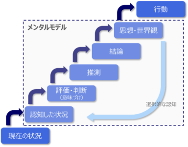 ところが、多くの場合、私達は、メンタルモデルに意識を向けることがなく、無意識にメンタルモデルを活用し、判断を下したり、行動を選択したりしています。